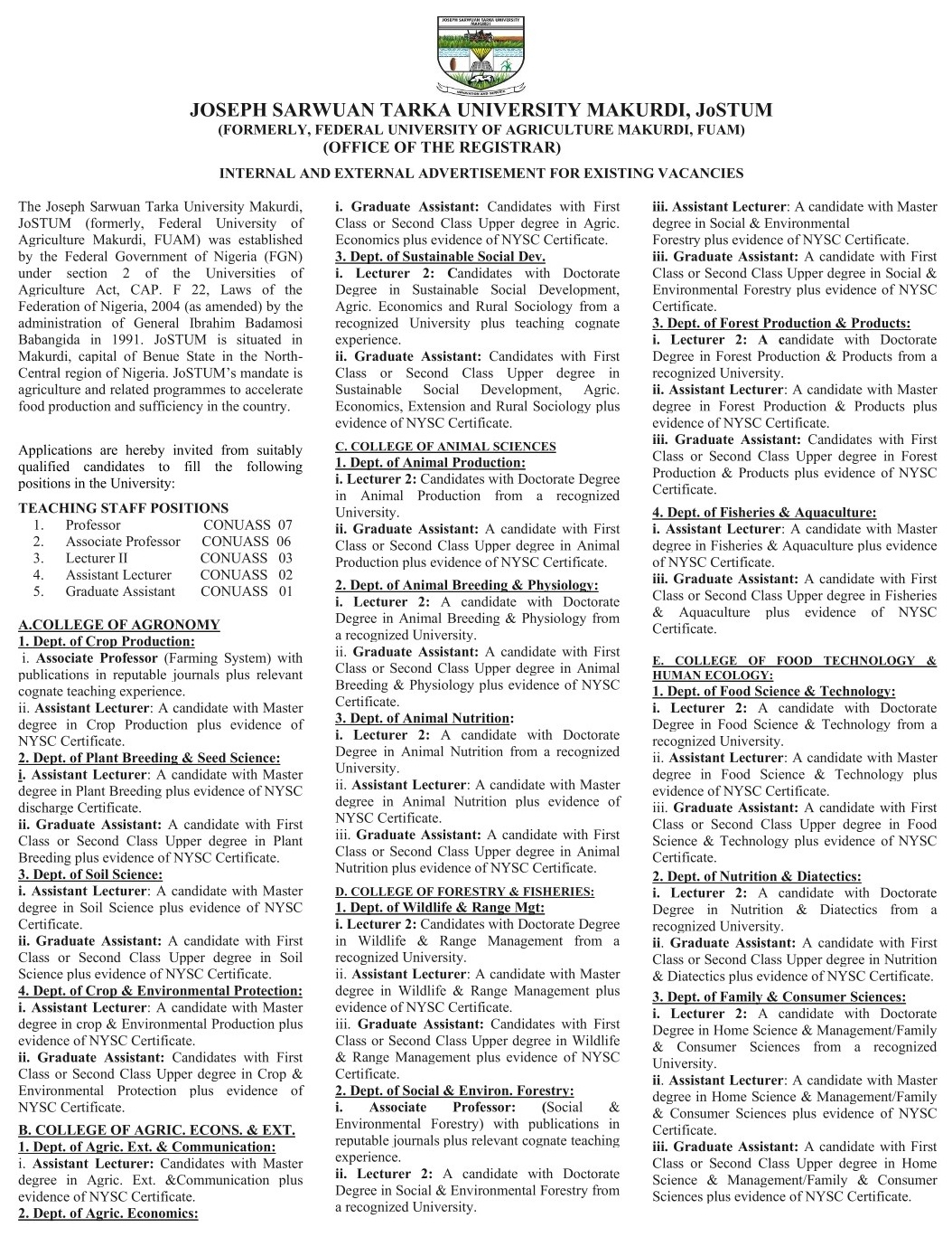 JOB OPPORTUNITIES! – Internal And External Advertisement For Existing Vacancies
